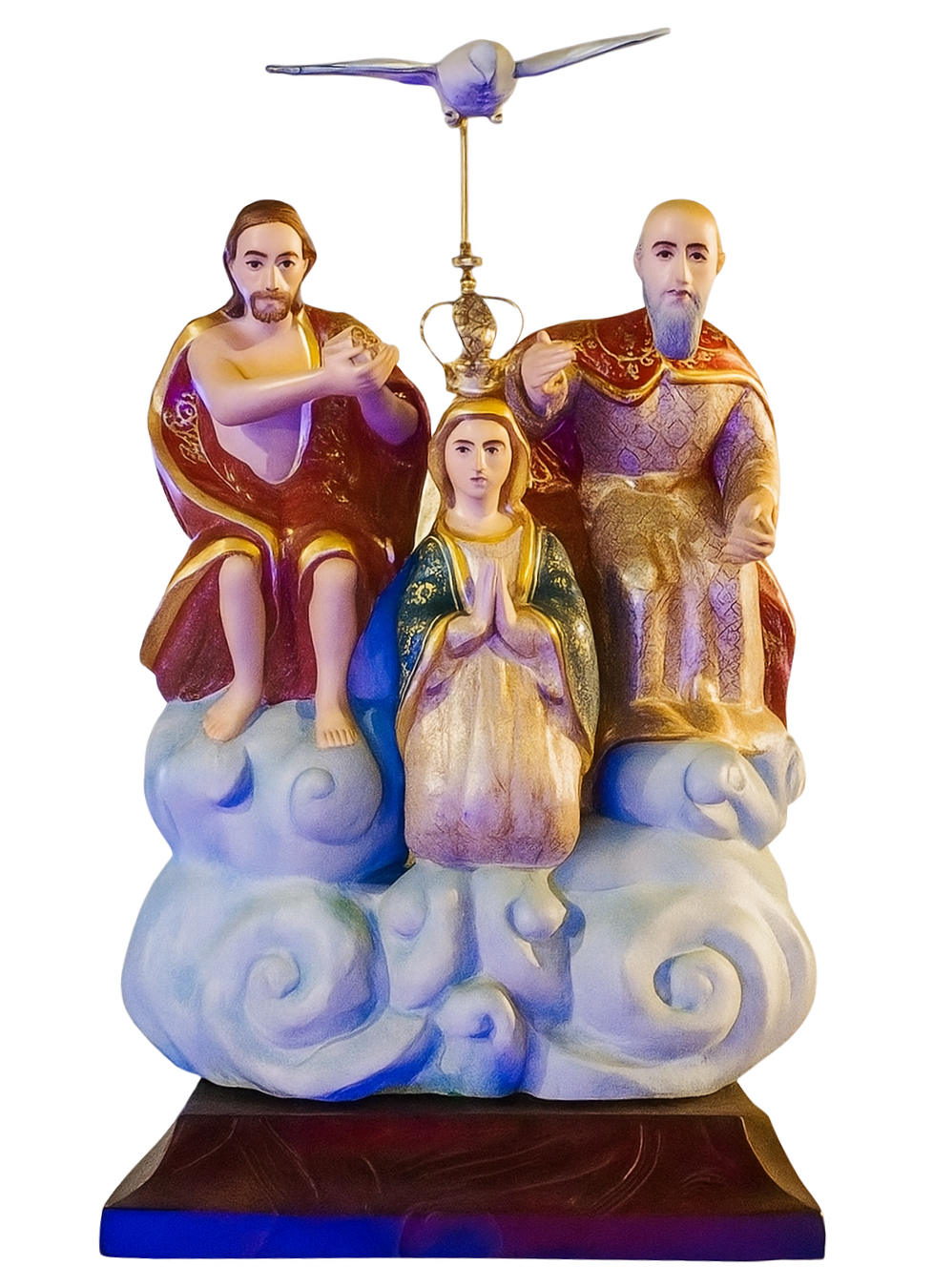 Essa imagem não é um símbolo qualquer. Ela carrega a carga espiritual de milhões de promessas, pedidos, agradecimentos, curas e milagres. É a representação de um Pai que acolhe e um Filho que conduz ao Céu, envoltos no abraço da Mãe que nunca abandona. Seu rosto é sereno, mas firme. Seu olhar é terno, mas exigente. Ele não fala com palavras, mas fala com presença.
